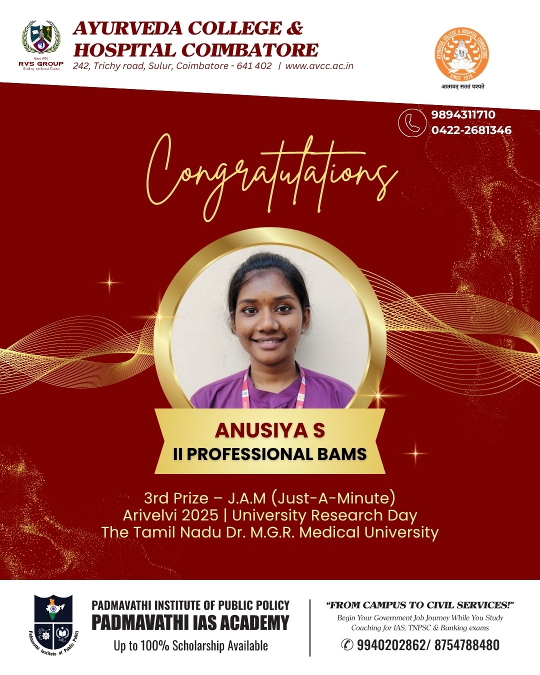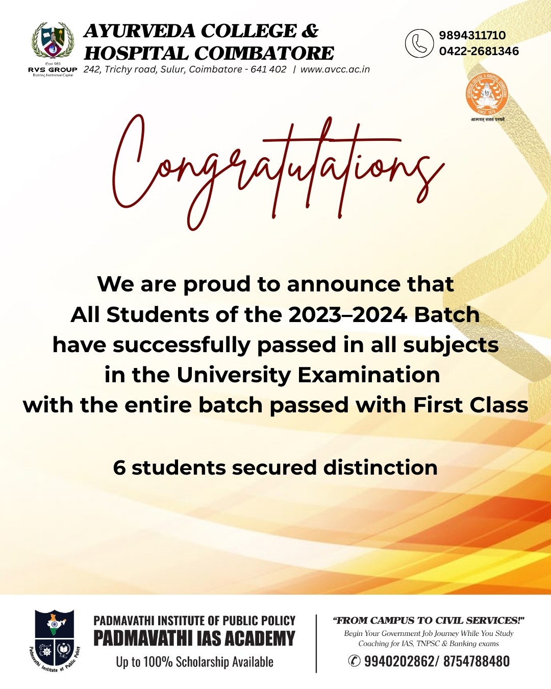 Ayurveda College Coimbatore is affiliated to the Tamil Nadu Dr.
